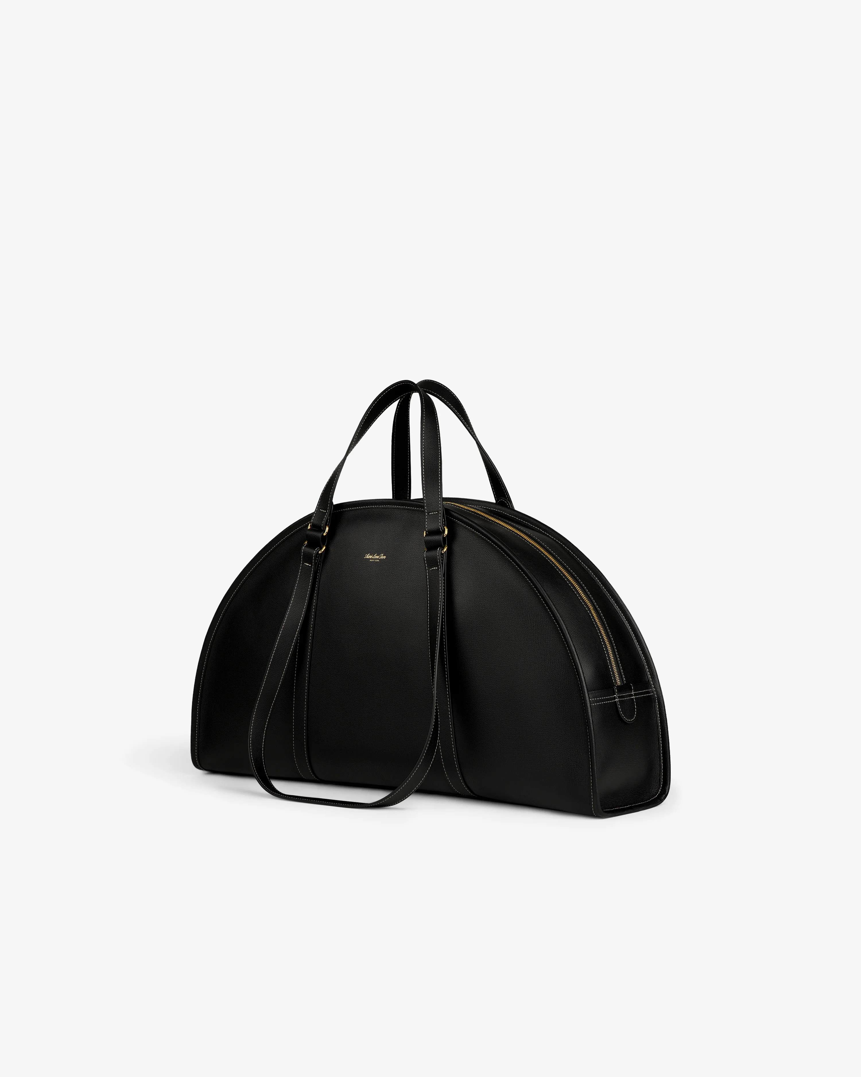 • Black leather bag• Full grain calf leather• Debossed gold foil logo at front• Double handles for shoulder & hand carry• Contrast stitching throughout• Large main compartment with double ended zip closure• Two interior slip pockets & one interior zipper pocket• Lined• LWG certified Italian calf leather• Lining: 100% Cotton Twill• Clean with soft dry cloth. Gently blot any liquid spills. If necessary, use a neutral leather cleaner or conditioner designed for aniline leathers. Avoid excessive exposure to sunlight, moisture, & heat. Store in a cool, dry place.• Handmade in Italy